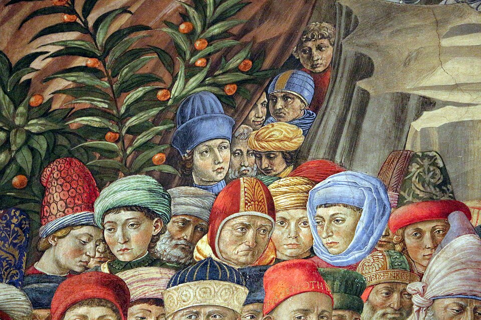 The idea or the thought of building a private chapel occurred sometime around 1449, when Cosimo the Elder was still alive. However, it will be his sons, Giovanni and, especially, Piero the Gouty who will carry on the work. Benozzo Gozzoli (1420-1497), one of the greatest fresco artists in Florence and a pupil of Fra Angelico, was commissioned to paint the fresco. He worked for five years, until 1463, and he’s so proud of his achievement that he “signs” the masterpiece with a self-portait: he’s wearing an red, elegant headpiece bearing the golden inscription “Opus Benotii” ( Latin for “Work by Benozzo”).
